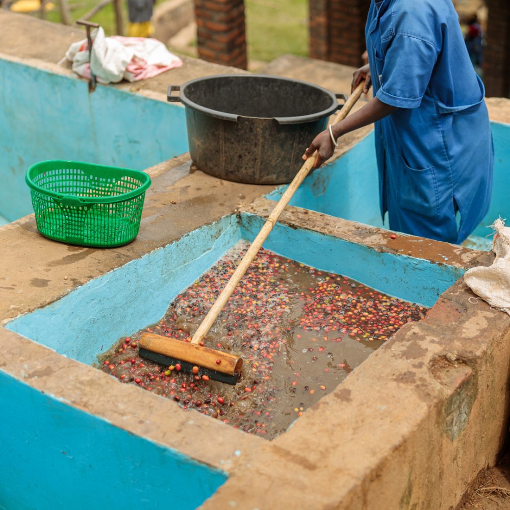 Káva pochází z promývací stanice Gitoki, která se nachází ve východní části země, v oblasti Gatsibo District, Gitoki Sector, ve východním regionu Rwandy. Kávovníky zde rostou v nadmořské výšce 1 500–1 800 m n. m., což spolu s místním klimatem vytváří ideální podmínky pro pomalé zrání třešní a rozvoj komplexních chutí. Káva je zpracována metodou fully washed. Třešně jsou ručně sbírány farmáři, pečlivě tříděny na třídicích stolech a následně floatovány ve vodě, aby byly odstraněny lehké a defektní kusy. Po odvážení a zaznamenání kvůli plné dohledatelnosti prochází káva odslupkováním a fermentací. Nejprve probíhá suchá fermentace po dobu 12 hodin, následovaná částečným promytím (tzv. dancing floats), poté je káva namáčena ve vodě po dobu 24 hodin. Tento pečlivý proces přispívá k čistému, vyváženému a elegantnímu chuťovému profilu.