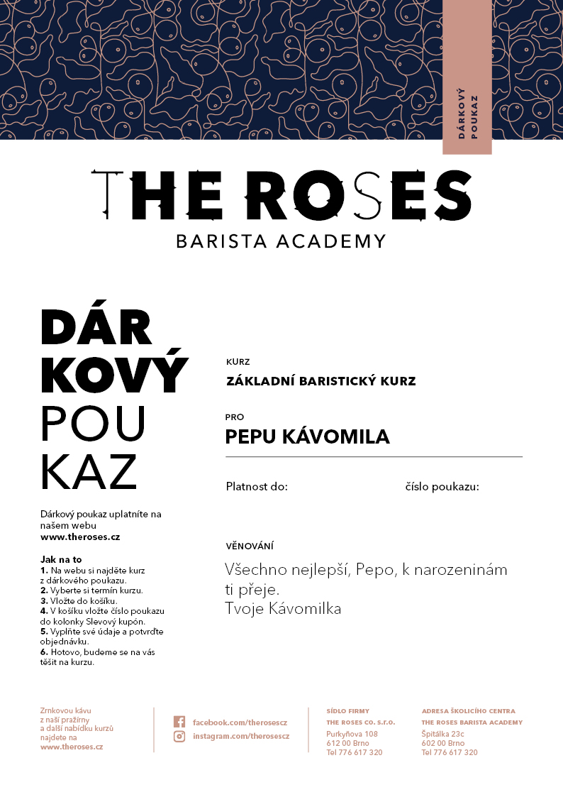 Darujte baristický kurz formou našeho dárkového poukazu, zaručeně potěší každého baristu i kávového nadšence.